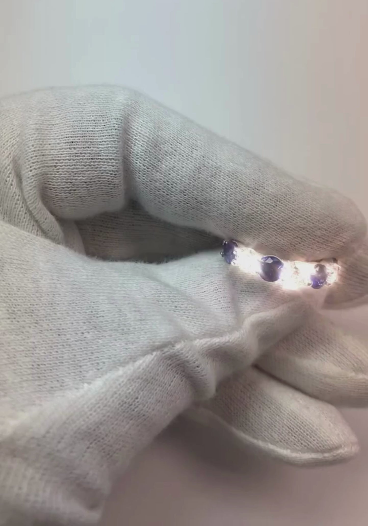 Steinspezifikationen: In der Mitte befinden sich vier blaue Saphire von jeweils ca. 0,35 Karat & ; drei runde Diamanten je ca. 0,35 Karat an der Seite. Natürliche, abgebaute Steine.