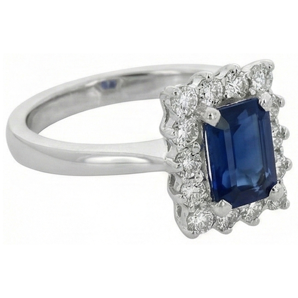 2 Karat Smaragd Ceylon Saphir und Aus der Erde Abgebauter Natürlicher Diamant Ring Weißgold 14K