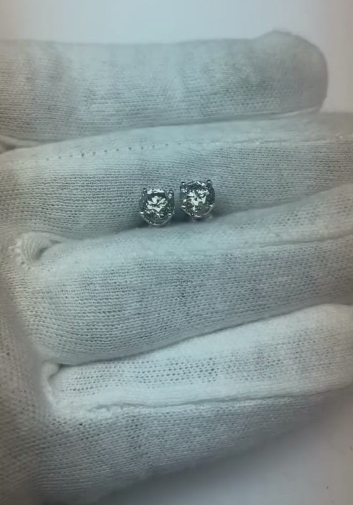 2K Solitär-Aus der Erde Abgebauter Natürlicher Diamantohrring mit rundem Ohrstecker aus echtem 14K Weißgold