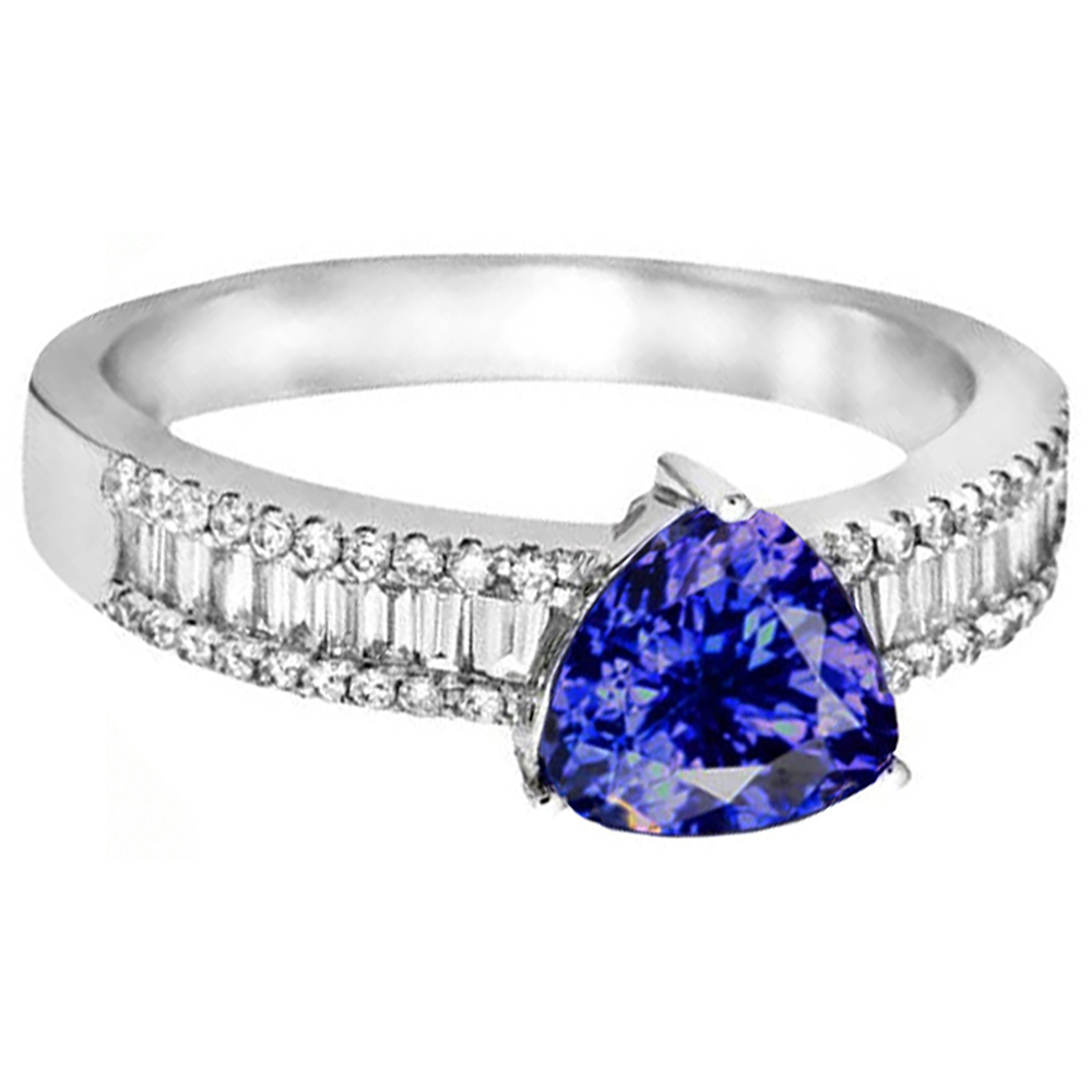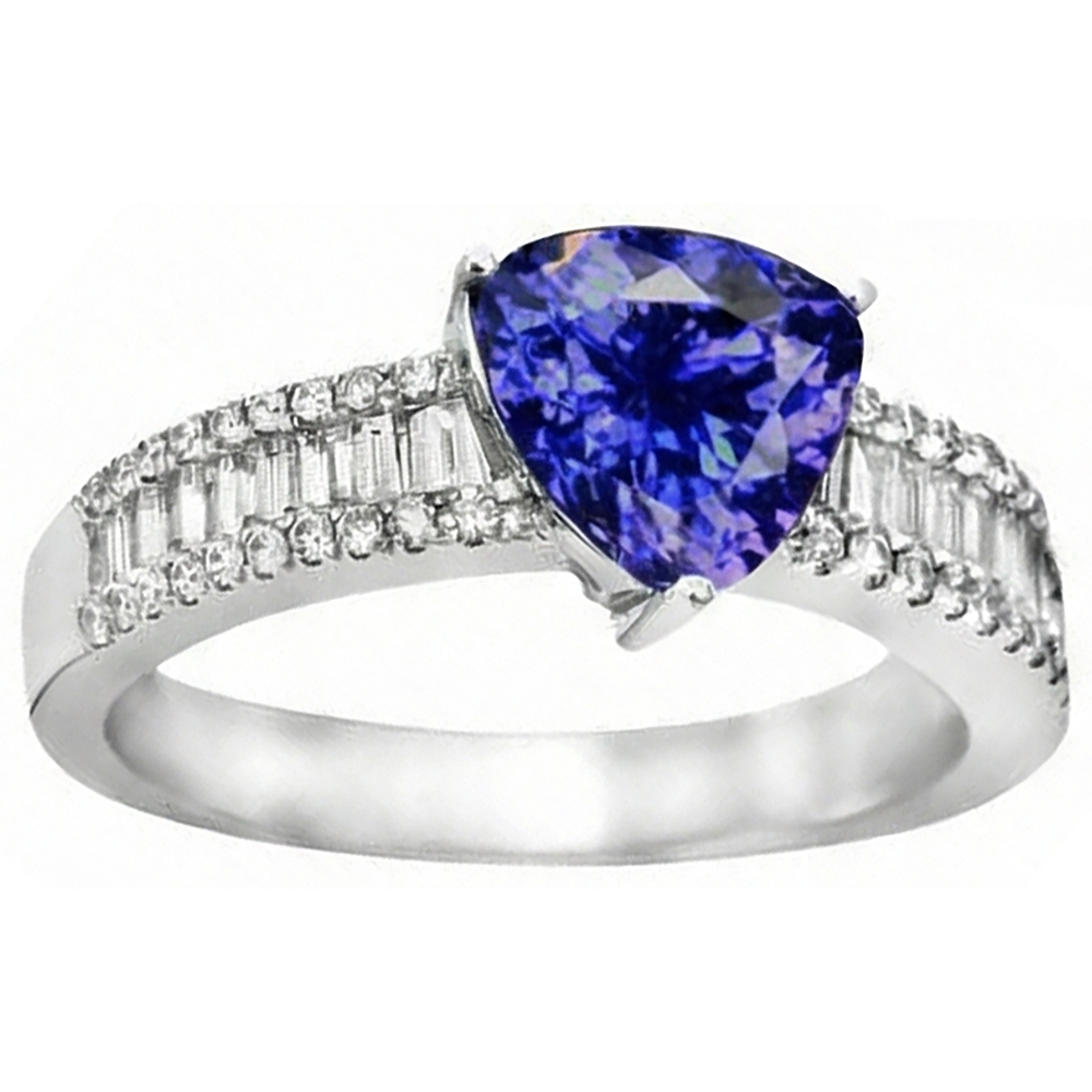 Steinspezifikationen : Es gibt einen Tansanit im Zentrum von ca. 2,01 Karat und ca. 2,00 Karat kleinere Diamanten am Schaft. Natursteine aus der Erde.