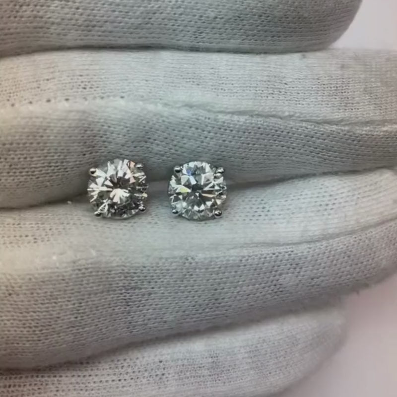 4 Karat Runden Funkelnde Aus der Erde Abgebauter Natürlicher Diamanten Damen Ohrstecker Weißgold 14K