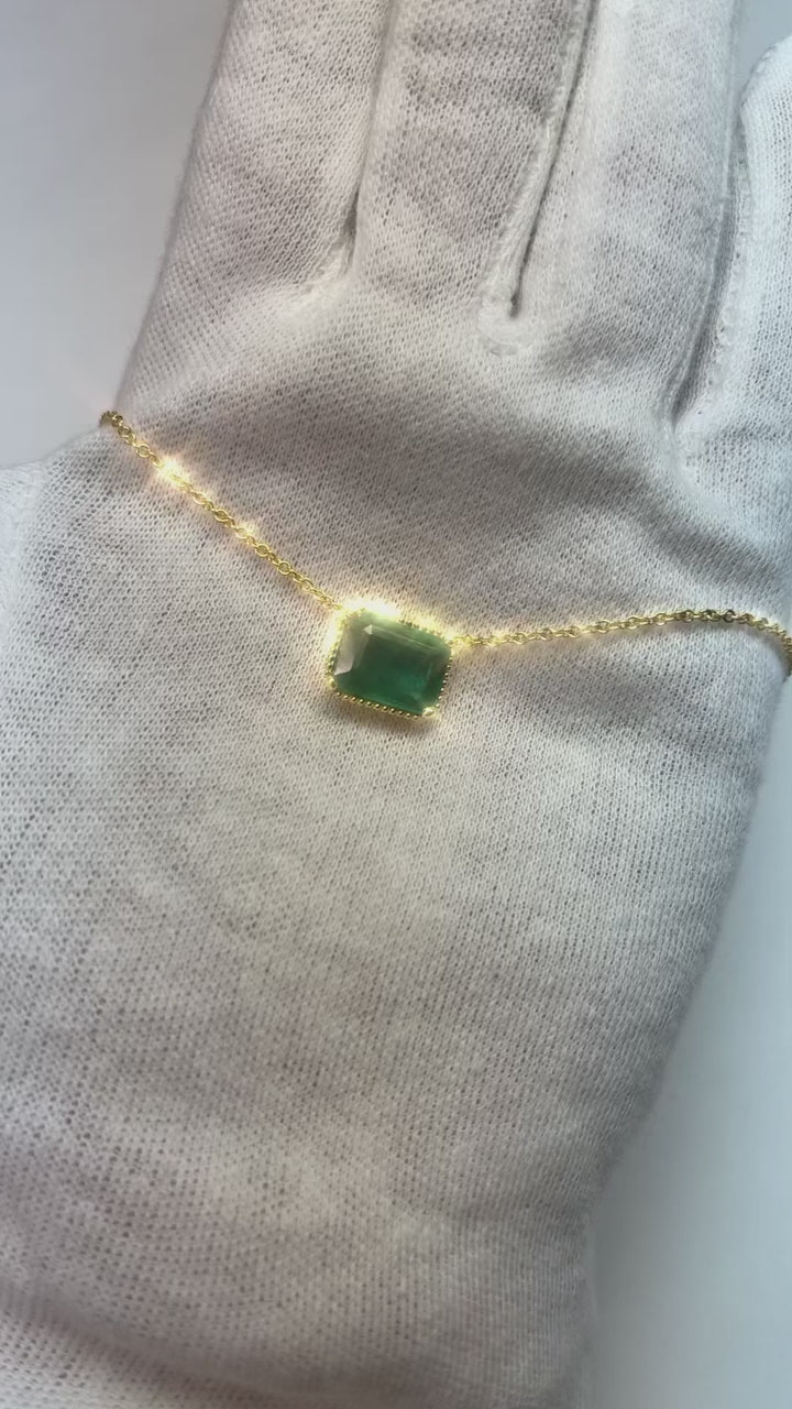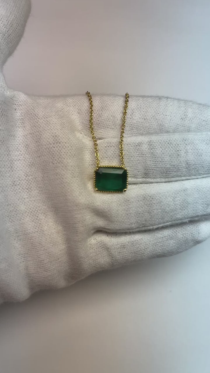 4 Karat Solitaire Grüner Smaragd Anhänger Halskette 14K Gelbgold