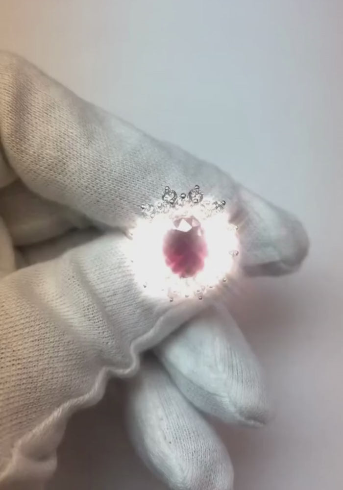 Steinspezifikationen: Es ist ein Rubin in der Mitte von ca. 4,25 Karat & ca. 2,25 Karat von kleineren runden Diamanten an der Seite. Natürliche, abgebaute Steine.
