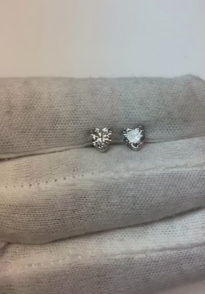 Damen-Ohrstecker mit 2 Karat Aus der Erde Abgebauter Natürlicher Diamant im Herzschliff aus massivem 14-karätigem echtem Weißgold