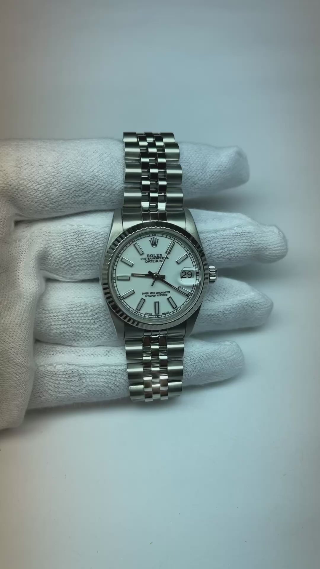 Date-just 31 mm Rolex Weißgold-Uhr mit geriffelter Lünette