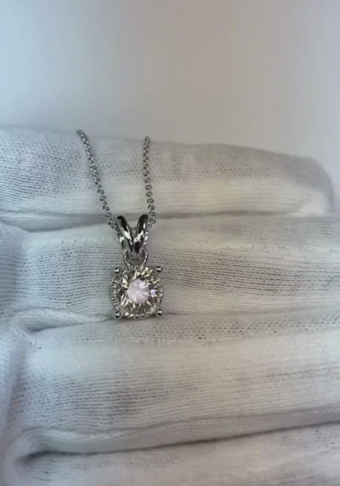 Echte Halskette mit rundem Solitärdiamant-Anhänger aus 1,25 Karat Weißgold