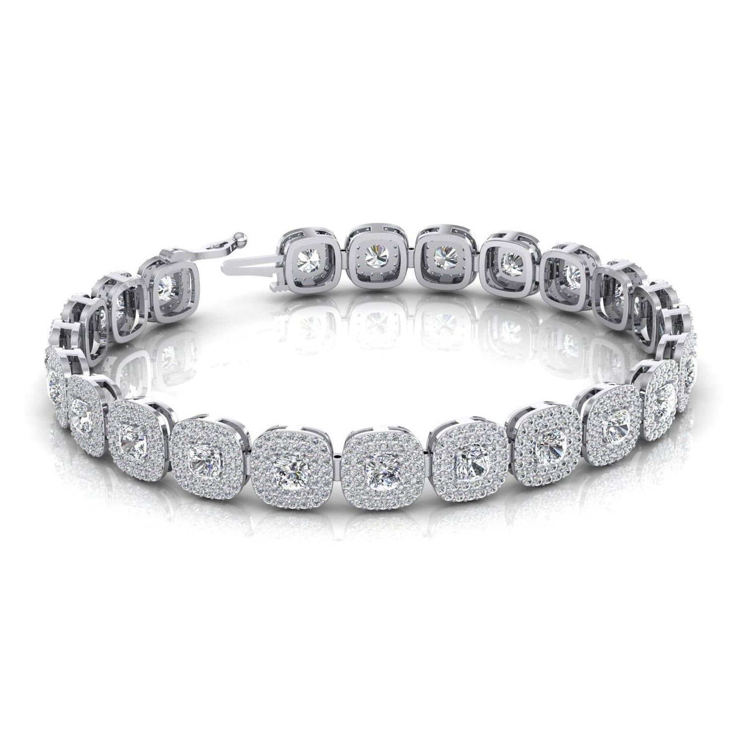 Steindetails: Es gibt 23 Diamanten im Kissenschliff von ca. 0,25 Karat (Größe ca. 3,3 x 3,3 mm) und ca. 6 Karat kleinere runde Diamanten im Armband. Natürliche Diamanten aus Erdminen.