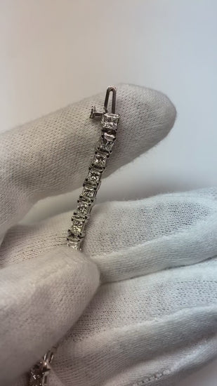 Krappenbesetztes Echt Diamant-Tennis-Armband 13 Karat Weißgold im Prinzessin-Schliff14K