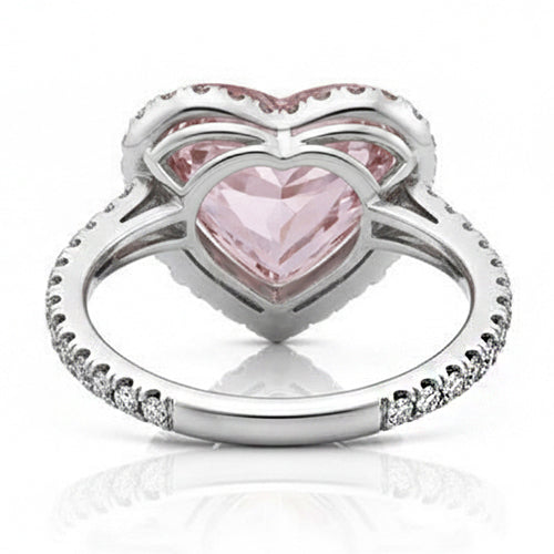 Natürlicher 3,35 Karat herzförmiger rosafarbener Saphir- und runder kleiner Diamant-Edelsteinring