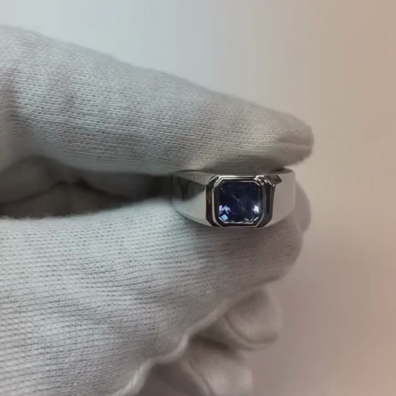Radiant Solitaire Herrenring Gold Ceylon Saphir Dicker Schaft 1 Karat