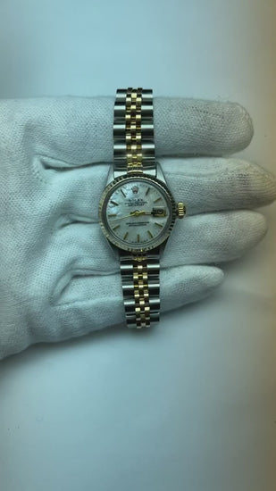 Rolex Datejust 26 mm Damenuhr mit Perlmutt-Stabzifferblatt und zweifarbigem Zifferblatt