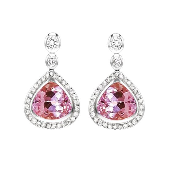 Rosa Kunzit Ohrringe mit Aus der Erde Abgebauter Natürlicher Diamanten 23,50 Karat Weißgold 14K