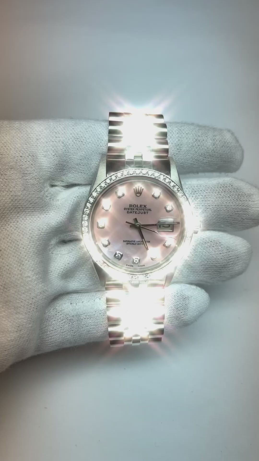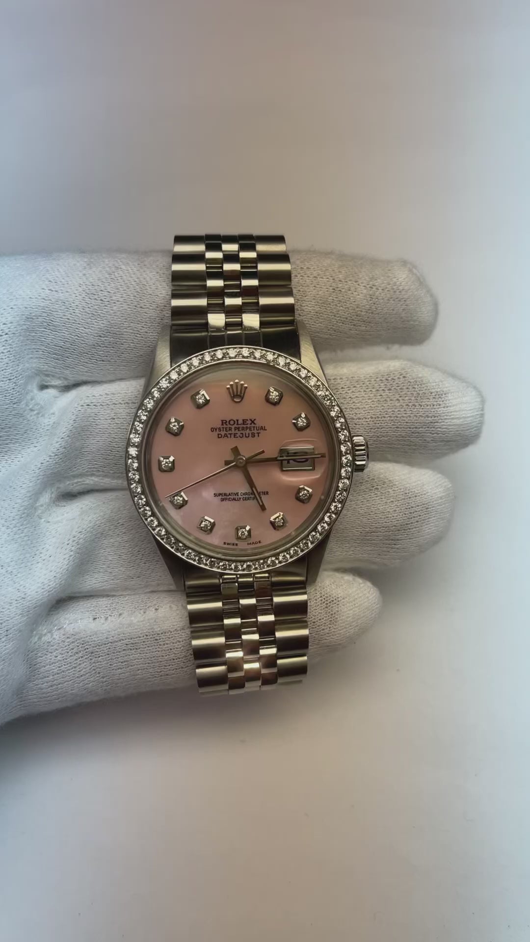 Rosafarbenes Diamantzifferblatt Rolex Datejust Uhr Oyster Perpetual Lünette Diamant SCHNELLSET