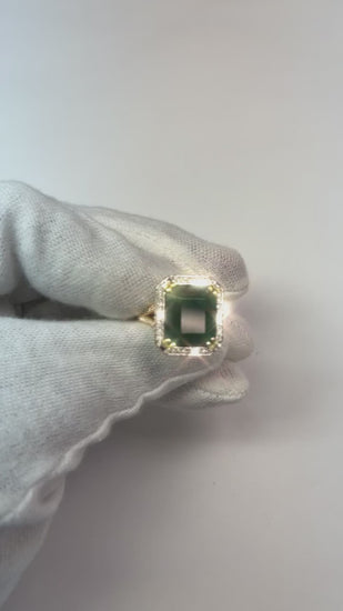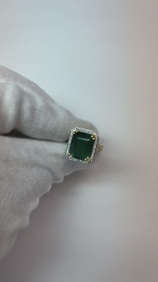 Sambischer Grün Smaragd- Und Diamant-Verlobungsring 11.50 Karat Zweifarbig 14K