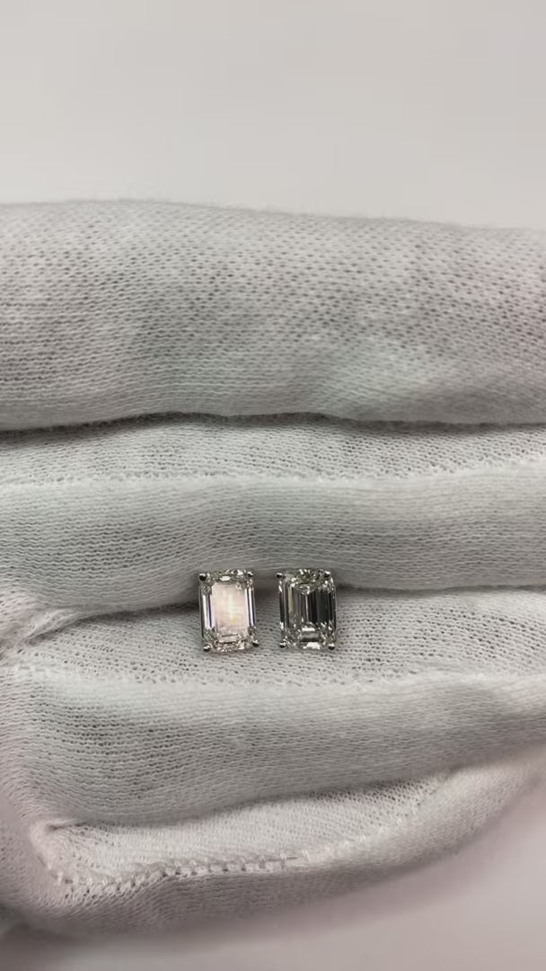 Smaragd 3 Karat Echt Diamant Damen Ohrstecker Weißgold 14K Schmuck