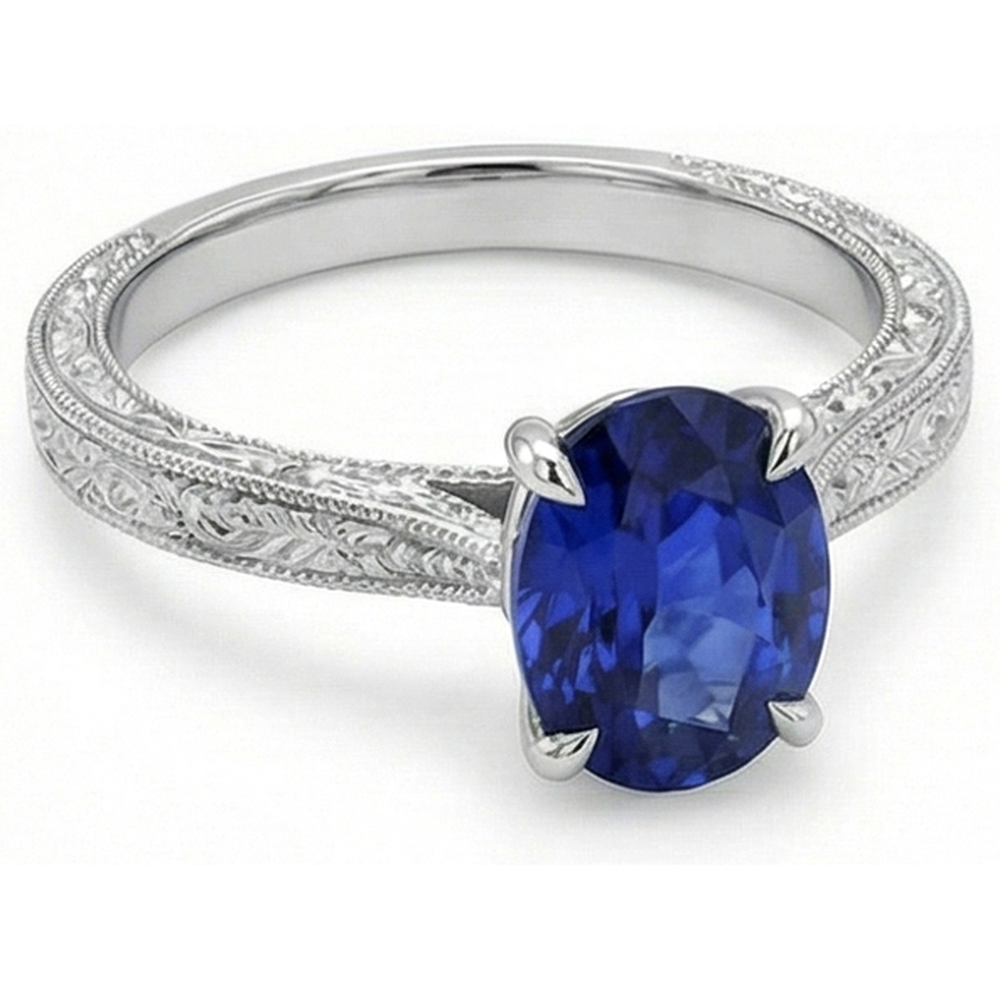 Steindetails: Es gibt einen Saphir im Ovalschliff von ca. 2,50 Karat (ca. Größe 9 x 7 mm). Aus natürlicher Erde gewonnener Stein.