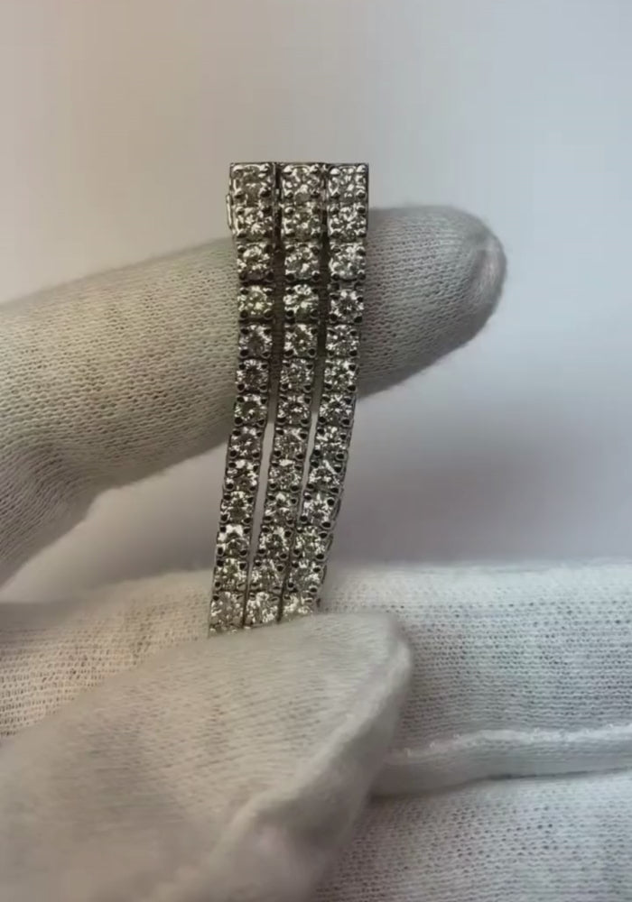 Triple Strand Flexibles Tennisarmband 12 Kt Aus der Erde Abgebauter Natürlicher Diamanten im Rundschliff Weiß