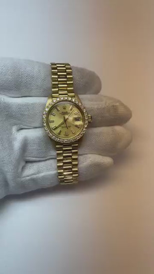 Uhr im Präsidentenstil mit Aus der Erde Abgebauter Natürlicher Diamantlünette Gold Champagnerfarbenes Zifferblatt Datejust